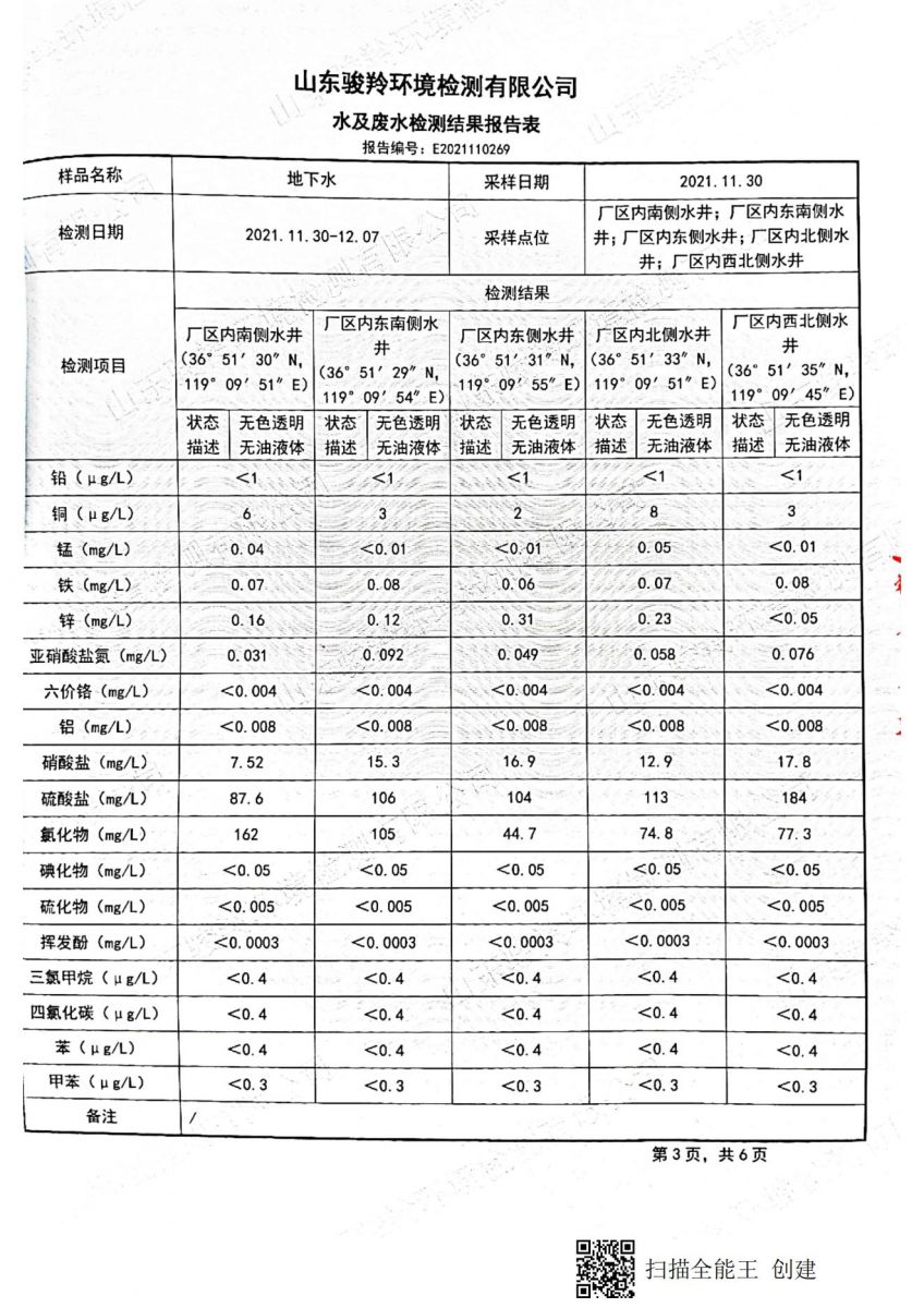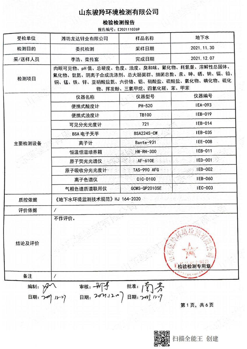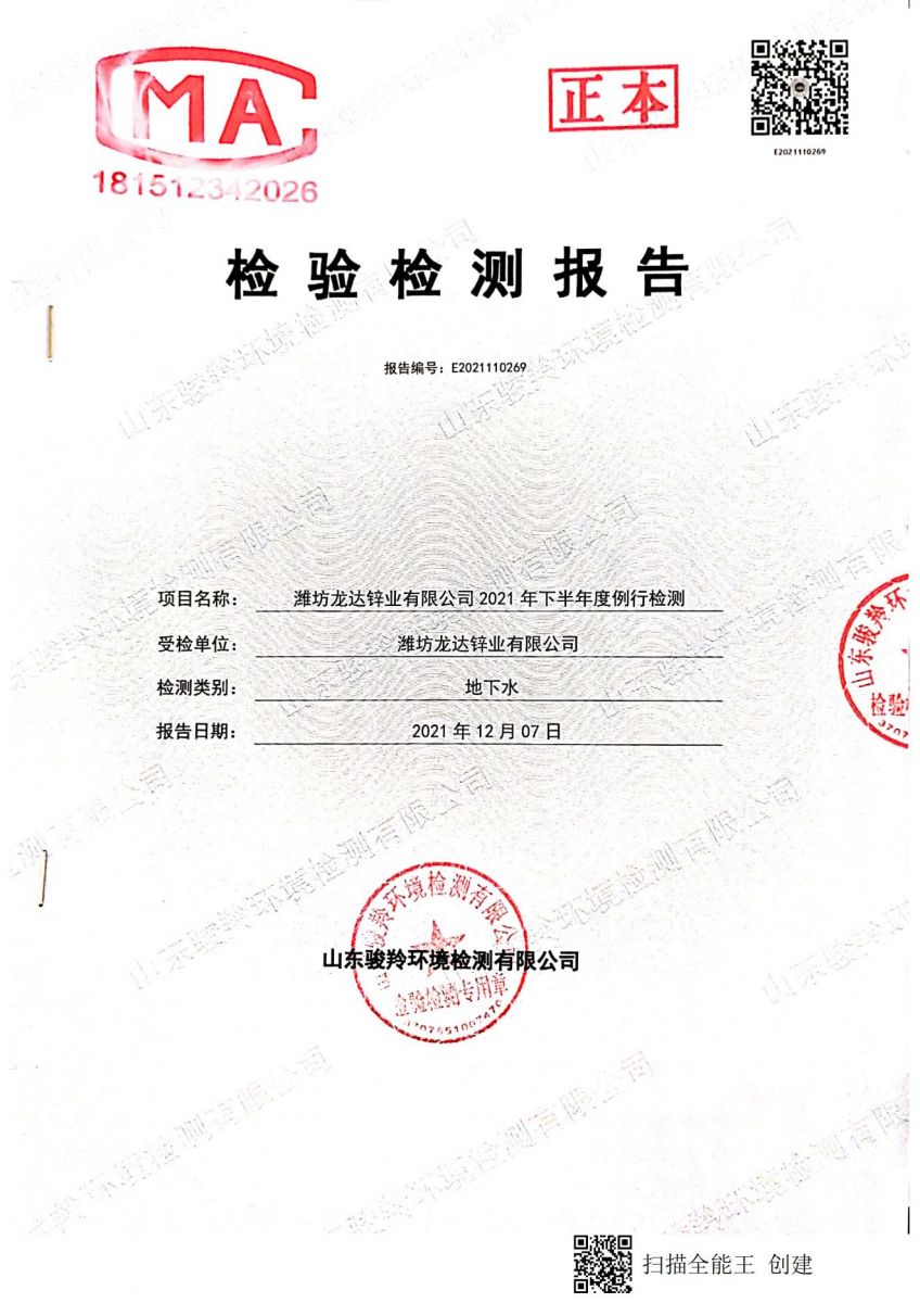 濰坊龍達(dá)鋅業(yè)有限公司2021年地下水監(jiān)測(cè)報(bào)告