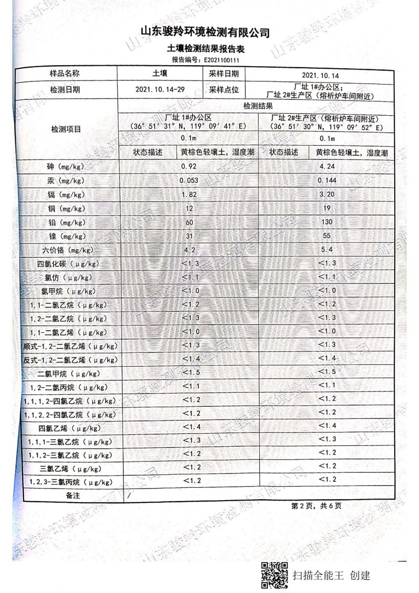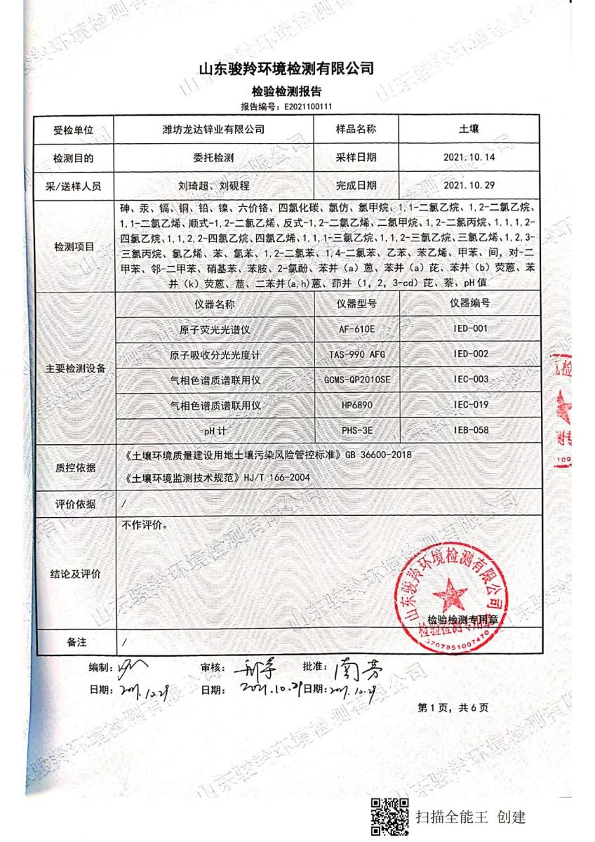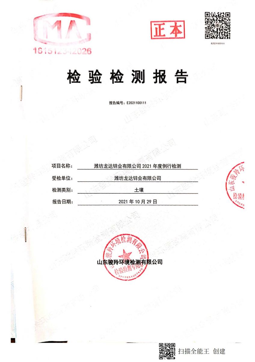 濰坊龍達鋅業(yè)有限公司2021年土壤監(jiān)測報告