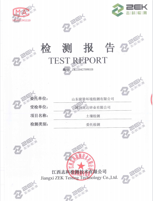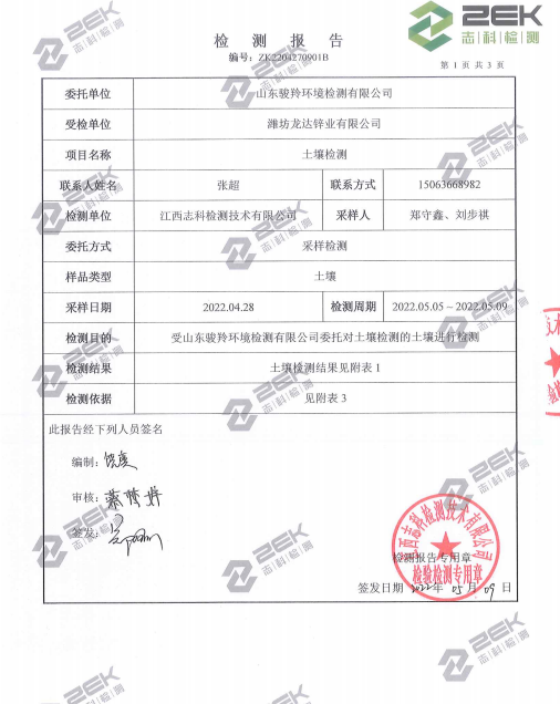 濰坊龍達鋅業(yè)有限公司2022年土壤監(jiān)測報告
